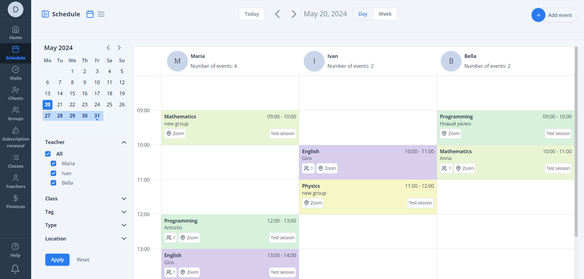 We will set up individual rates for calculating tuition fees: by the hour or based on customer visits, providing accurate and convenient payroll calculation for your teachers.